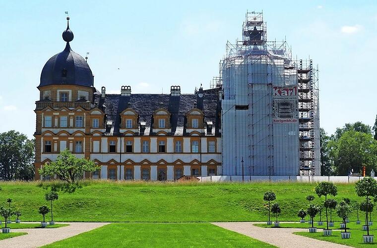 Besucher von Schloss Seehof finden die ehemalige fürstbischöfliche Sommerresidenz zurzeit teilweise eingerüstet. Es wird kein Kunstprojekt vorbereitet, sondern vielmehr beginnen umfangreiche Restaurierungs- und Sanierungsarbeiten durch den Freistaat Bayern. In drei Bauabschnitten investiert der Freistaat insgesamt rund 12,5 Millionen Euro. Es werden die Fassaden, das Dach und die Parkmauern saniert sowie die Parkfiguren und Parktreppen restauriert. Die westlichen Türme und die Fassaden sind bereits eingerüstet und ein Wetterschutzdach ist installiert. Das Gerüst wandert während der drei Bauabschnitte um das Schloss. Eine vollständige Einrüstung ist daher nicht erforderlich.
