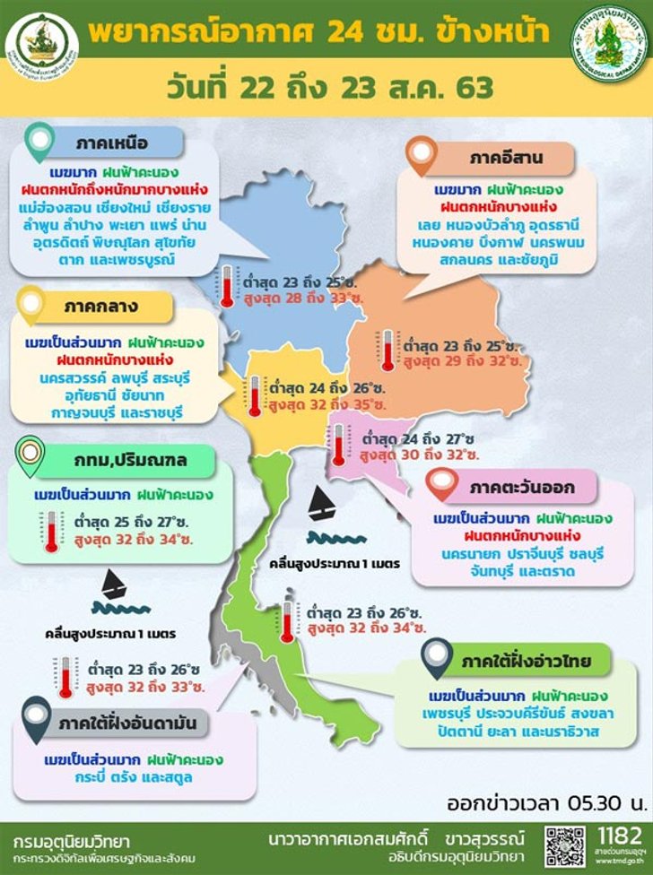 ประกาศกรมอุตุนิยมวิทยา “ฝนตกหนักถึงหนักมากบริเวณประเทศไทยตอนบน มีผลกระทบจนถึงวันที่ 23 สิงหาคม 2563” ฉบับที่ 3 ลงวันที่ 22 สิงหาคม 2563